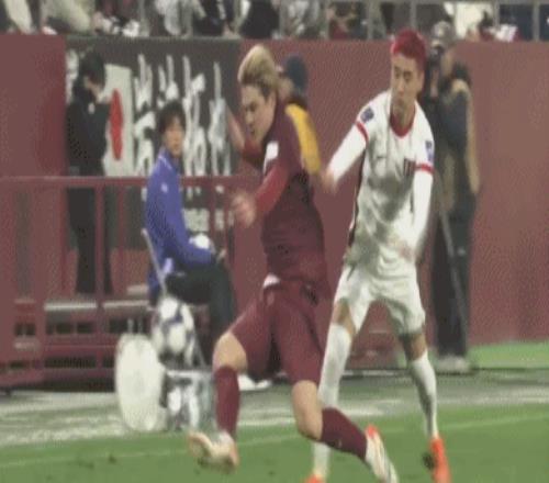 比赛的第42分钟,韦世豪边路防守时推倒酒井高德,后者非常不满,倒地之后对着韦世豪大喊,并且伸出手指示意韦世豪连续2次犯规。