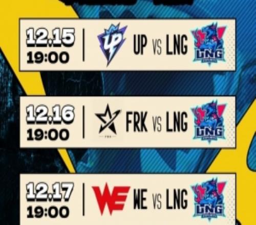 体育资讯12月14日称 LNG发布德杯阵容名单和赛程:全主力出战!对阵UP FRK和WE;